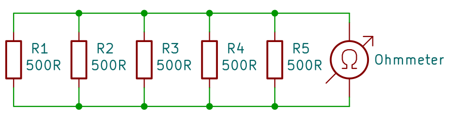 Pokud uvidíte někde paralelní zapojení více rezistorů, které mají stejný odpor, výsledná hodnota bude hodnoty jednoho rezistoru.