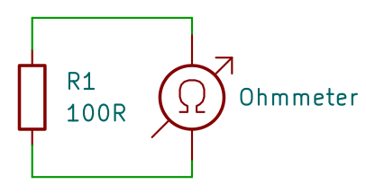 Pro začátek pro pochopení, takto vypadá zapojení měření hodnoty odporu rezistoru pomocí ohmmetru: