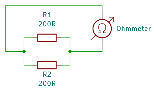 Pokud uvidíte někde paralelní zapojení 2 rezistorů, které mají stejný odpor, výsledná hodnota bude polovina hodnoty jednoho rezistoru.